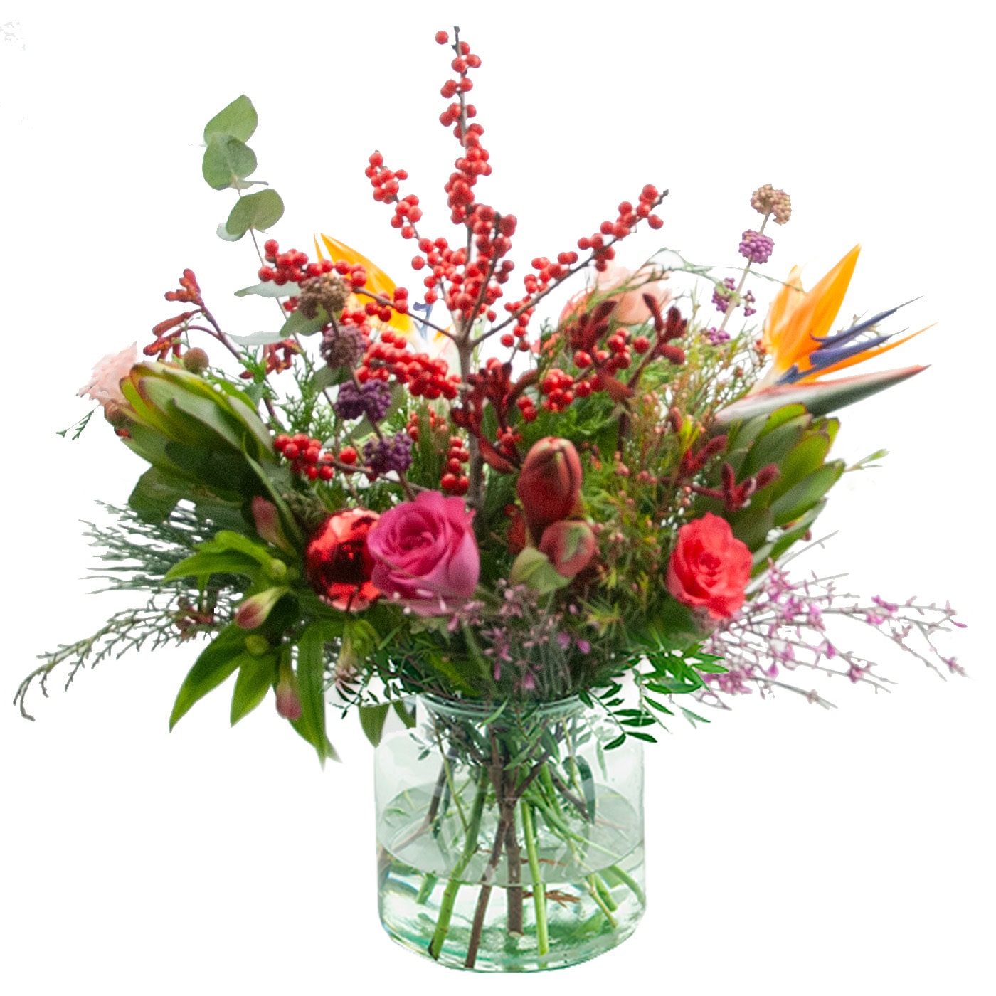 Add some color Christmas bouquet is hand-tied by a local professional florist.