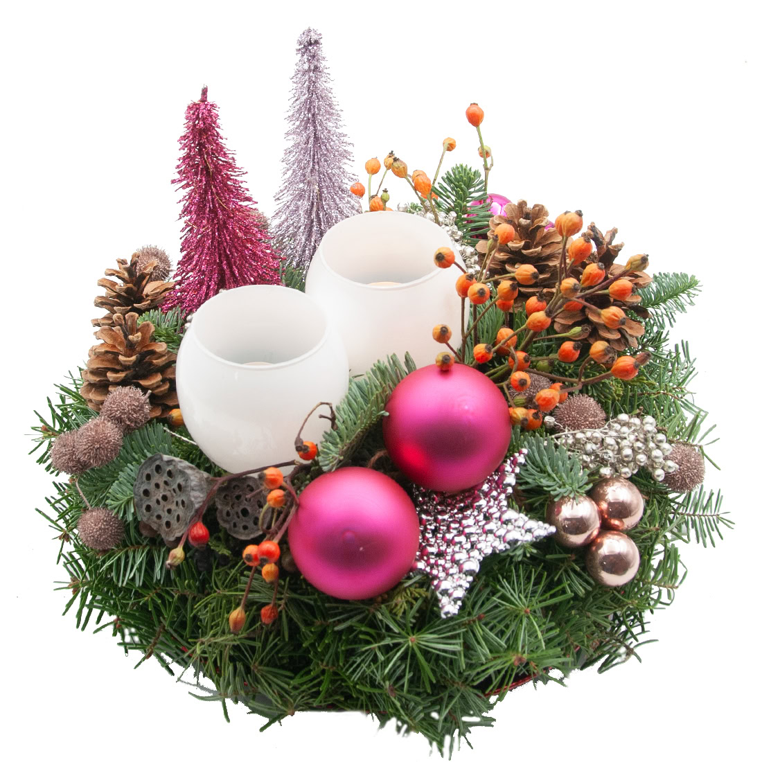 Add Some Color Christmas Glow with candles, in soft pink tones. Featuring this year’s trendy Christmas colours for a stylish and festive look.