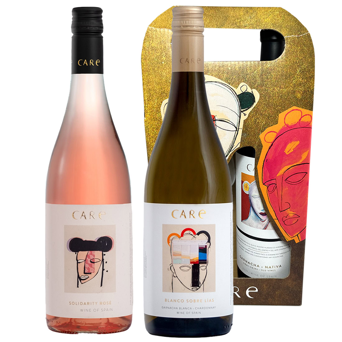 Care Wine Duo – Blanco & Rosé – Two Spanish wines in a stylish gift box A beautiful wine gift with two characterful Spanish wines from Bodegas Care. This set contains the crisp Blanco Sobre Lías (Garnacha Blanca & Chardonnay) and the fruity Solidarity Rosé. Together they form an elegant pairing to give or share.