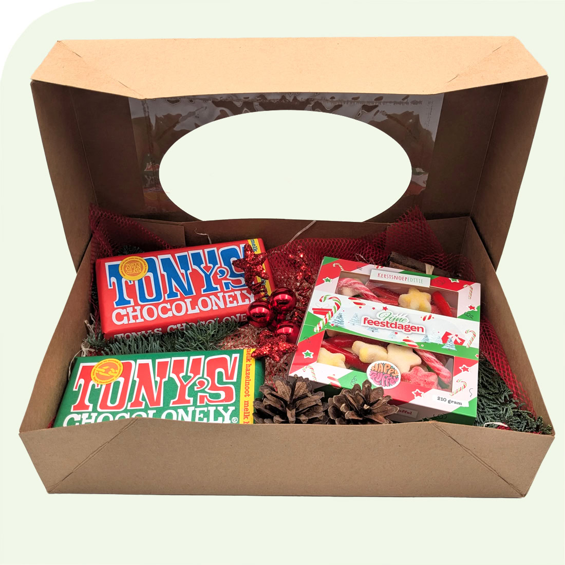 Christmas box with tonys chocolonely. Treat someone (or yourself!) to this festive Christmas box filled with Tony’s Chocolonely bars and cheerful holiday candies. A delicious gift for chocolate lovers, colleagues, friends, or family perfect for getting into the Christmas spirit right away! Always a nice gift!