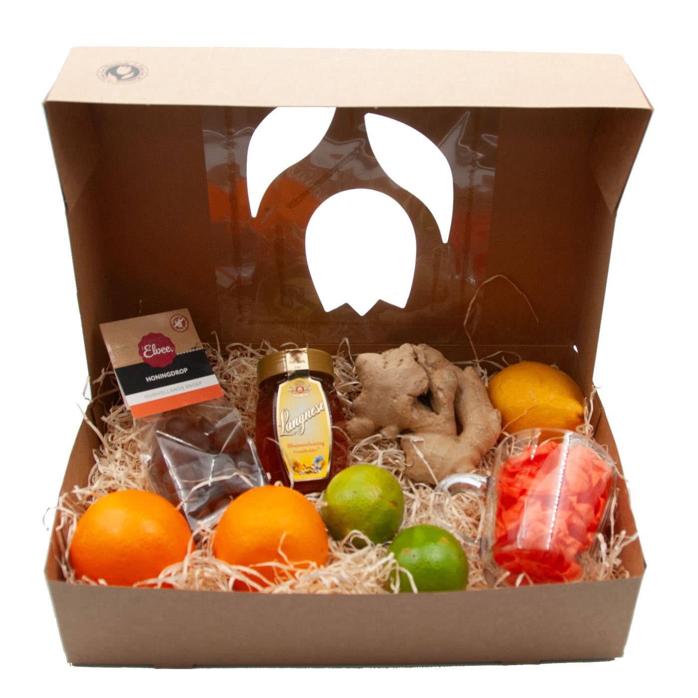 Fruit box ginger gold. Fresh tea package. Soft for the throat and filled with delicious fresh fruit and vitamins.