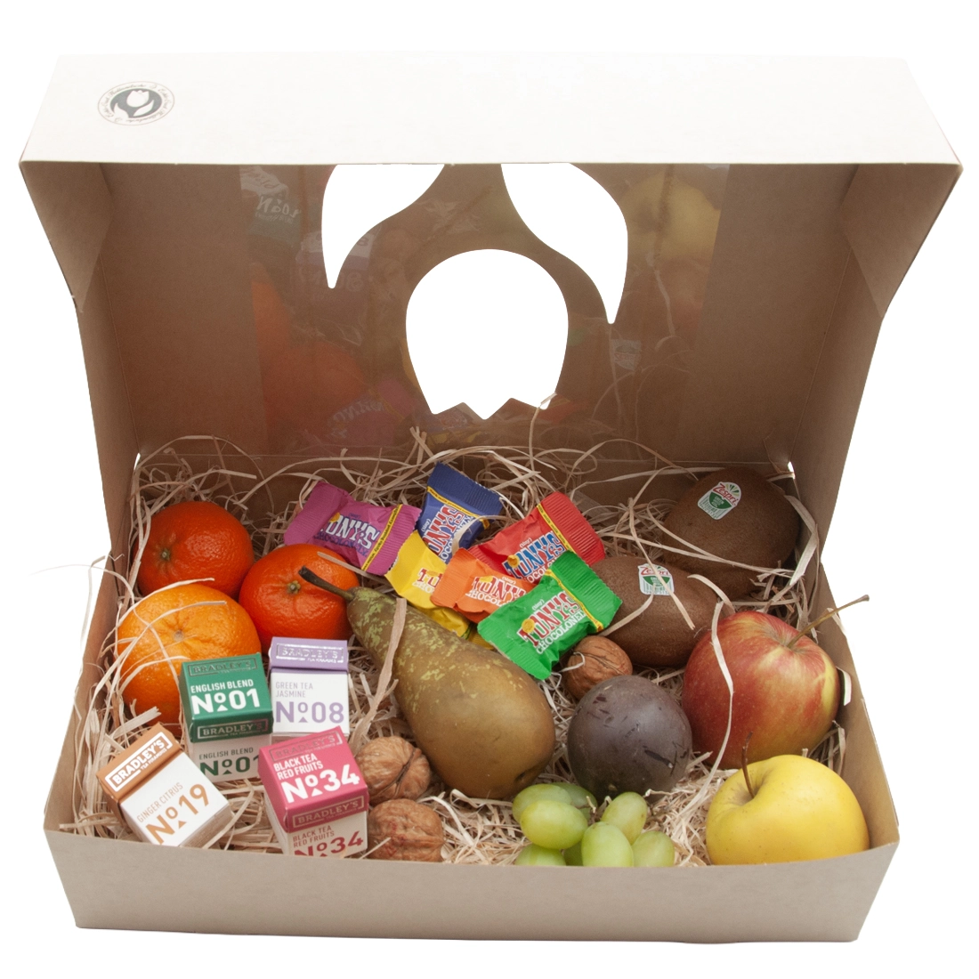 Fruit box just thinking of you. Fruit crate made of delicious fresh seasonal fruit, with 6 Tiny Tonys and 4 Bradley’s tea. Always delicious fresh fruit carefully selected for you!