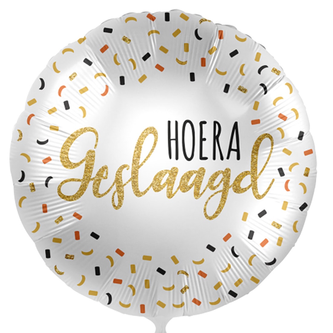 Hooray graduated confetti! Helium balloon of approximately 18 inch. A balloon from a box, always a nice floating surprise!