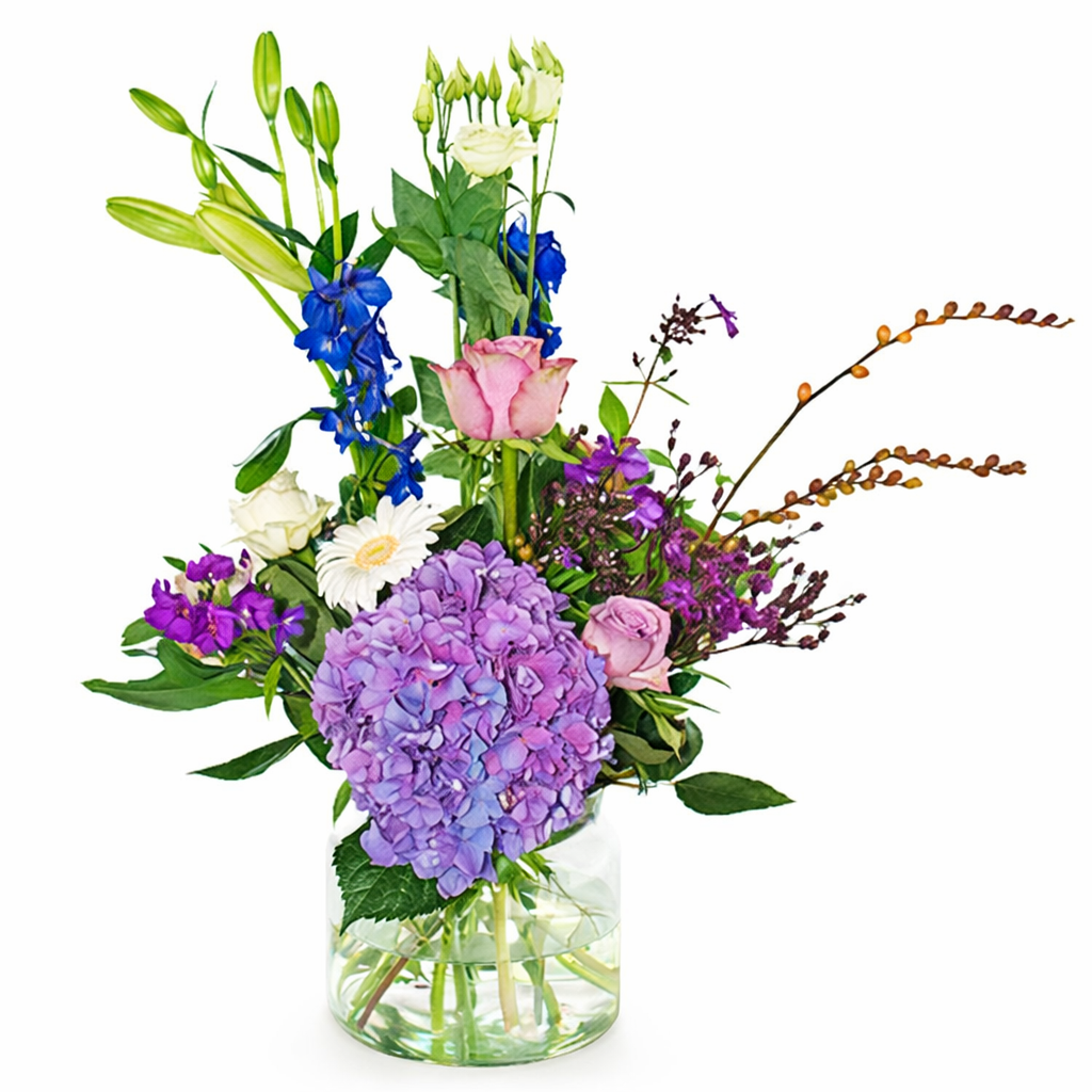 Palette bouquet blue purple white, this bestseller is hand-tied by a local professional florist.