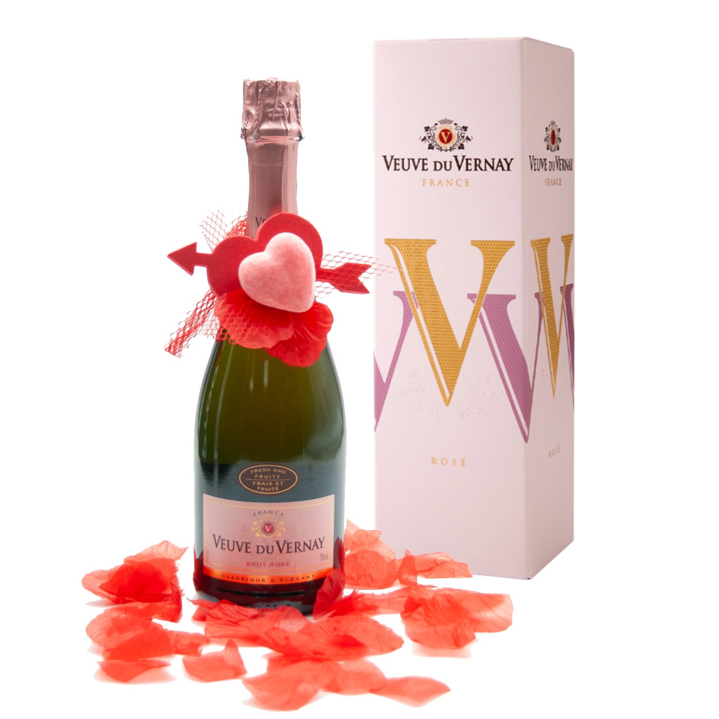 Veuve du Vernay rosé 75cl Romantic theme, in gift packaging. Please note that both the client and recipient must be 18+.