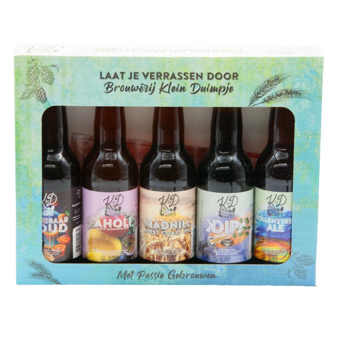 Tom Thumb Gift Box IPA. 5 bottles of special beer from our neighbors. Brewed by in the craft brewery located in the Bollenstreek