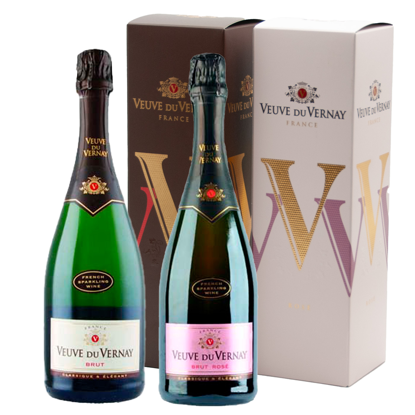 Veuve du Vernay Brut and Rosé 75cl, champagne in gift box. Please note that both the client and the recipient must be 18+.