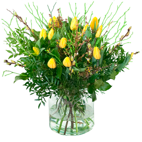 Yellow tulips with spring branches, spring through and through. Crisp fresh tulips in a real spring colour. The season is over, this product is currently not available!